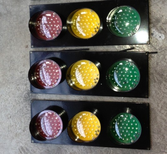 滑触线三相电源指示灯是专门用于实时监视行车、龙门吊等起重设备的三相电源的信号指示,以防止设备电源的缺相造成的不良后果。该产品采用LED进口超高度发光二极管制成,分四种颜色( 黄、绿、红、橙)分别指示电源的三相,可视距离约300米,寿命大于十万小时,优于其他同类产品。